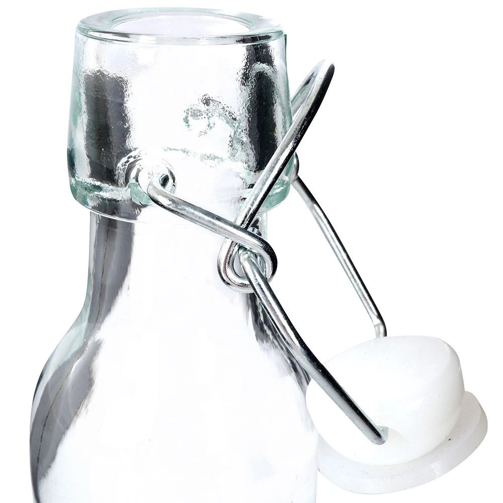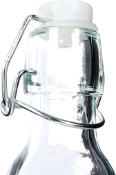 Această sticlă compactă în stil retro este realizată din sticlă clară de calitate și este perfectă pentru ulei de măsline, uleiuri aromate, lichioruri de casă, vinuri sau siropuri de fructe. Clipsul metalic cu garnitură din silicon creează o închidere etanșă, care previne scurgerile și ajută la păstrarea aromei și gustului.