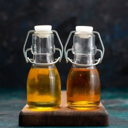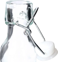 Clipsul metalic cu garnitură din silicon etanșează ferm sticla, previne scurgerile și prelungește prospețimea uleiurilor, siropurilor și lichiorurilor.