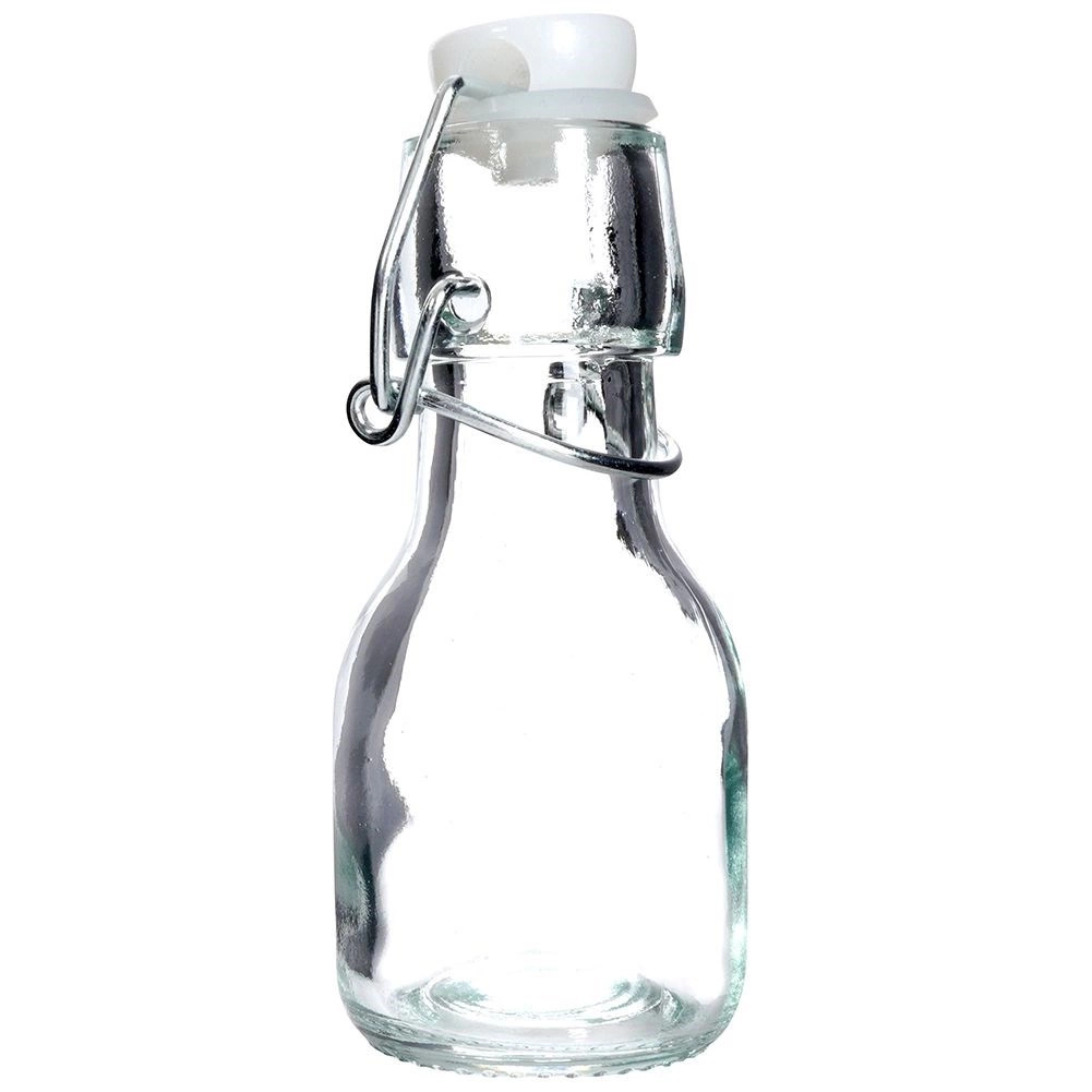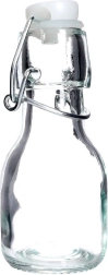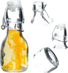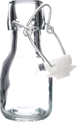 Practică sticlă de sticlă cu volum de 75 ml și închidere swing-top, ideală pentru uleiuri de casă, lichioruri și siropuri. Datorită sticlei transparente, conținutul este frumos pus în valoare, iar clipsul etanș cu garnitură din silicon asigură păstrare sigură fără scurgeri și o prospețime mai îndelungată.