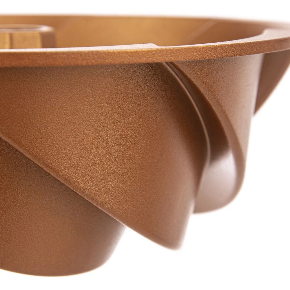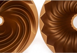 Descoperiți o formă de guguluf fiabilă, din aluminiu de calitate, cu finisaj cu aspect de cupru, care, datorită hornului, distribuie excelent căldura și asigură coacere uniformă. Tratamentul dublu antiaderent PFLUON ușurează ungerea și răsturnarea, astfel încât vă puteți concentra doar pe gustul și aspectul deserturilor.