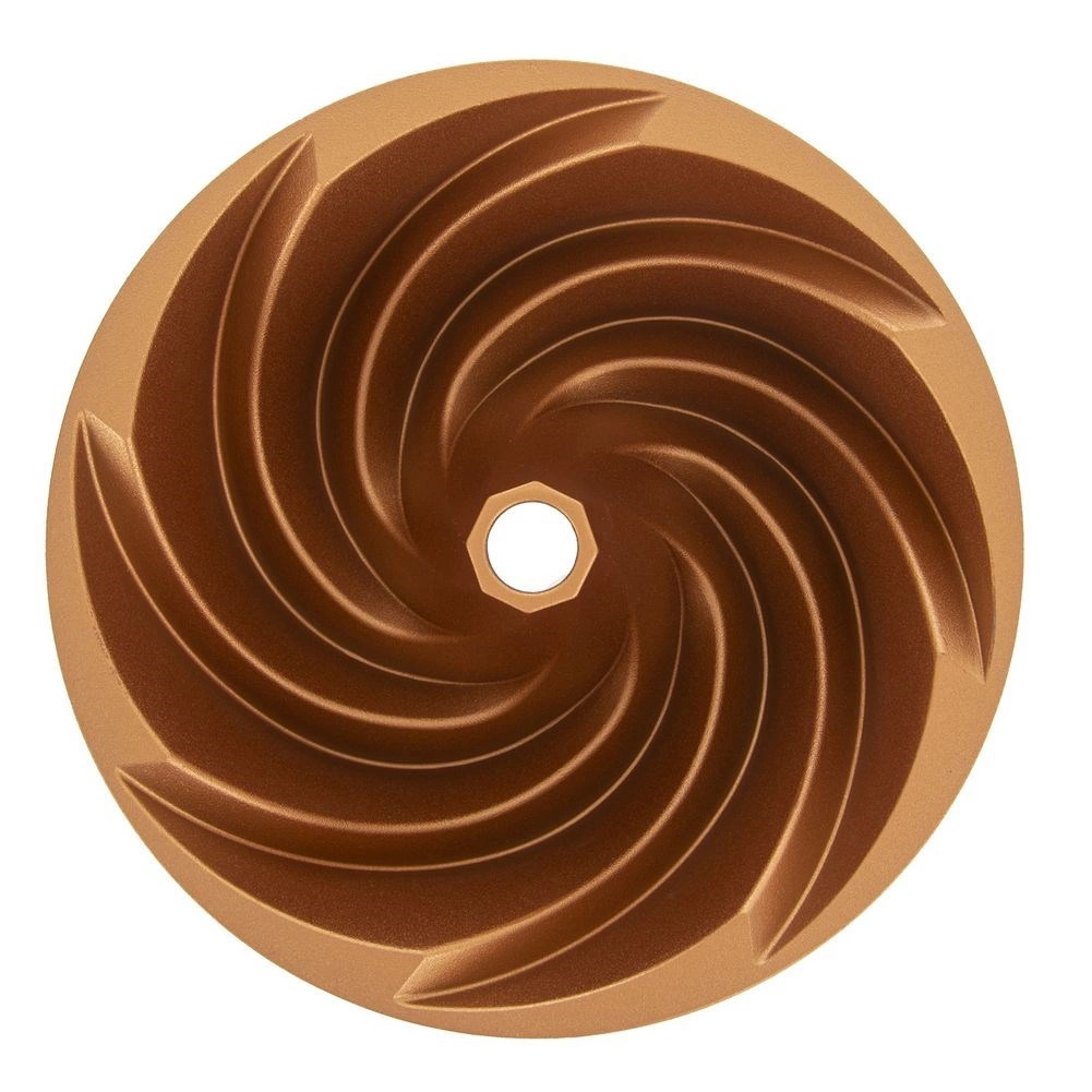 Fundul profilat creează un model spiral impresionant, care arată grozav cu glazură de zahăr, ciocolată sau o simplă pudrare cu zahăr.