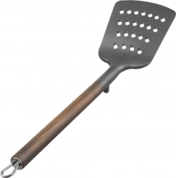 Paleta WOODEN cu dimensiunile 34,5 × 9 cm este realizată din termoplastic PBT de calitate, care se remarcă prin rigiditate și durabilitate ridicate. Mânerul metalic cu finisaj în decor de lemn asigură un priză confortabilă și un aspect elegant, potrivit atât bucătăriilor tradiționale, cât și celor moderne.