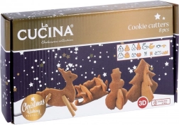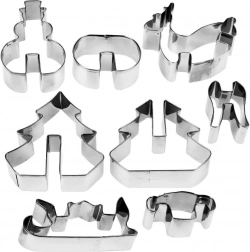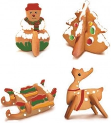 Setul conține 8 piese pentru prepararea a 4 motive 3D diferite: brăduț de Crăciun, om de zăpadă, ren și săniuță. Dimensiunile pieselor variază aproximativ între 4,5–9,5 cm lățime și 3,5–8,5 cm lungime. Formele sunt universale – potrivite și pentru fondant sau mase modelabile pentru decorarea torturilor și deserturilor.