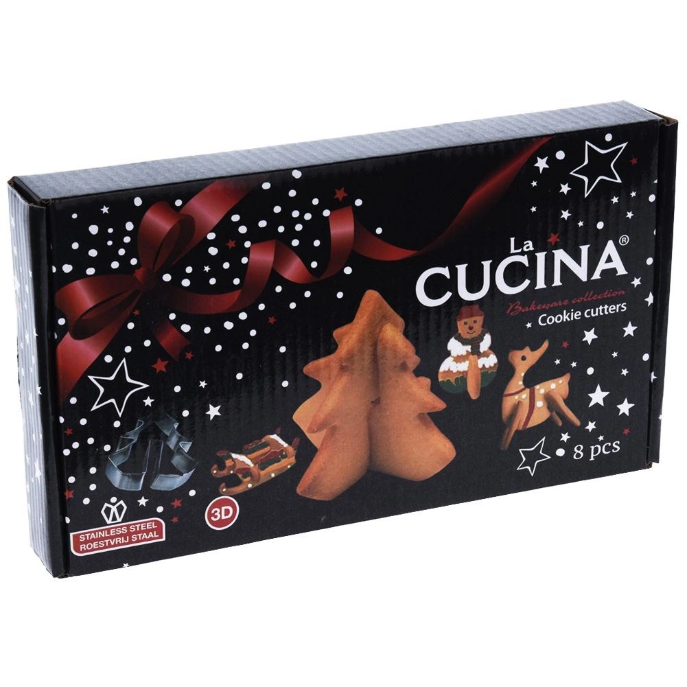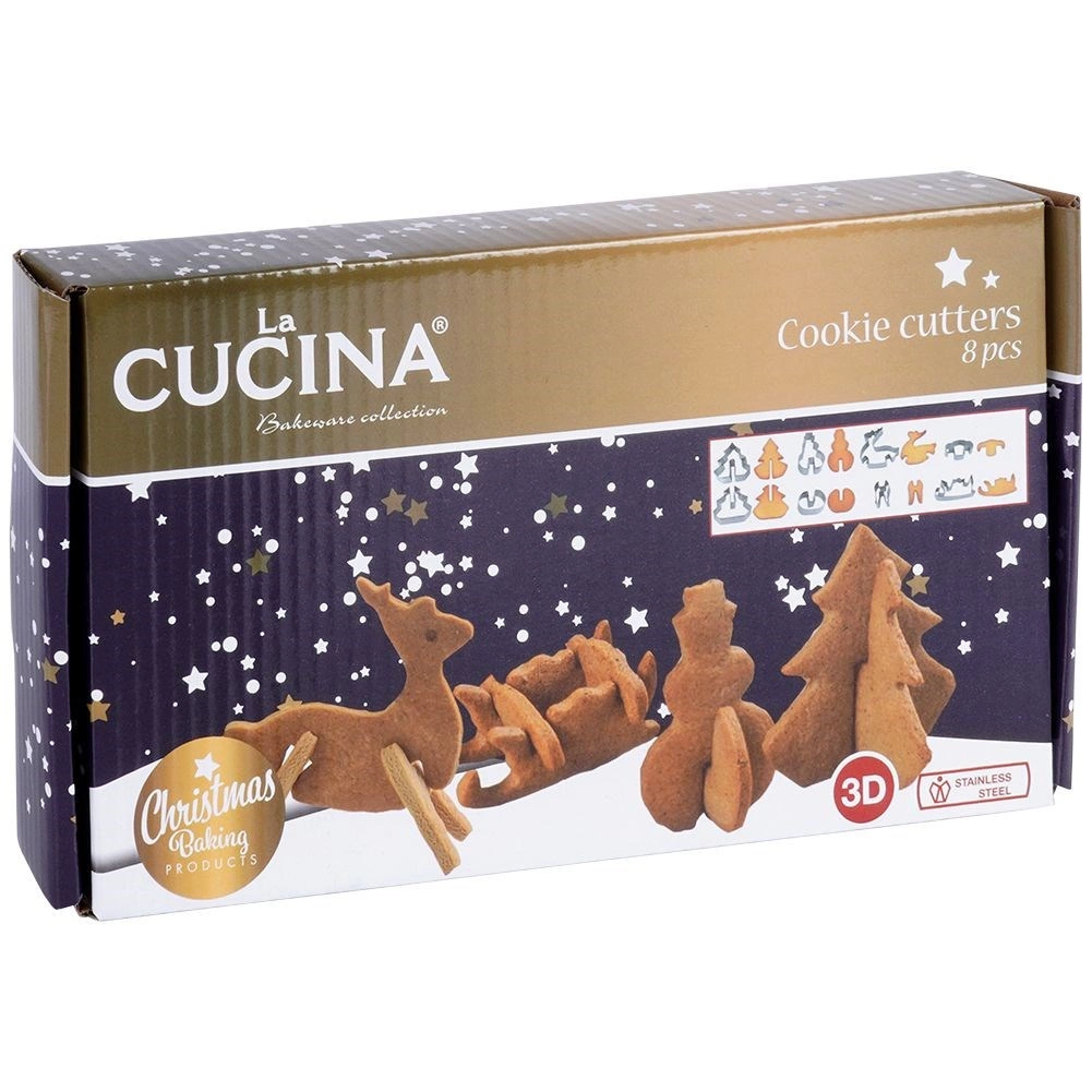 Descoperiți farmecul coptului festiv cu un set care transformă aluatul clasic în decorațiuni 3D în picioare. Formele de tăiat din oțel inoxidabil de înaltă calitate decupează cu ușurință piese precise, care după coacere se îmbină și creează motive de Crăciun spectaculoase. Biscuiții finali pot fi chiar agățați pe marginea cănilor pentru a fi serviți cu stil la ceai sau cafea.