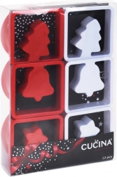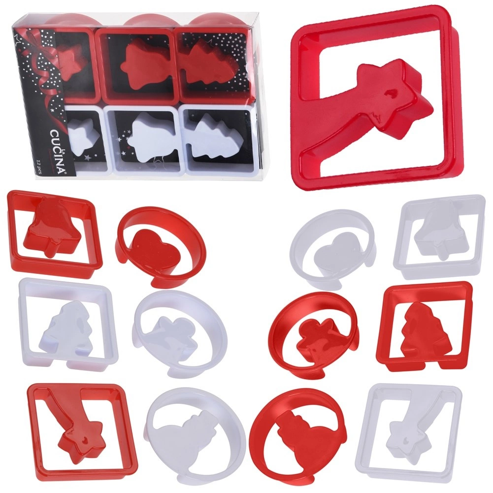 Pregătiți-vă de copt cu un set practic de forme de decupat, care va încânta orice iubitor de prăjituri de Crăciun. Datorită combinației de rame pătrate (7 × 7 cm) și rotunde (Ø 7,5 cm) veți crea cu ușurință motive frumoase și biscuiți sau turtă dulce uniformi. Formele sunt din plastic de calitate, rezistent, în culorile alb și roșu, și, cu îngrijirea corectă, vor rezista multe sezoane.