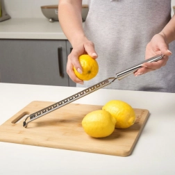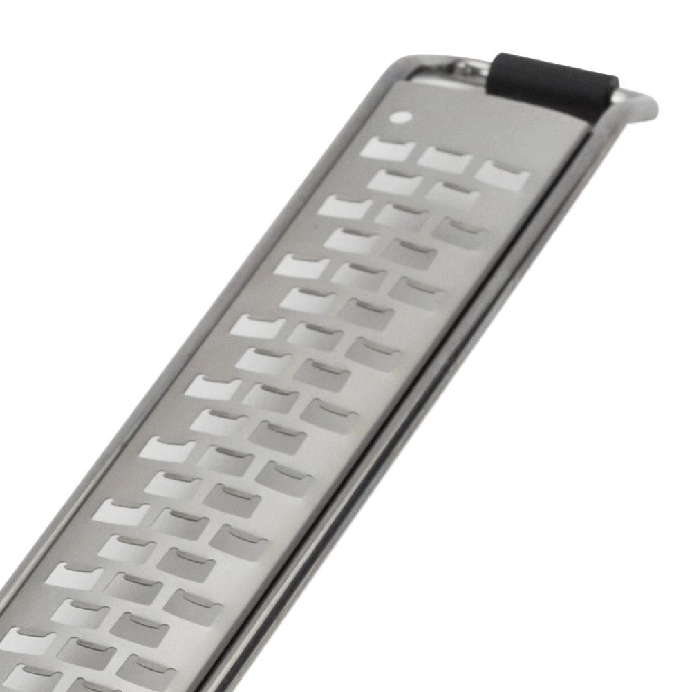 Dinții fini și ascuțiți din oțel inoxidabil 304 asigură o răzuire rapidă și uniformă a cojii de citrice, brânzeturilor tari și ciocolatei.