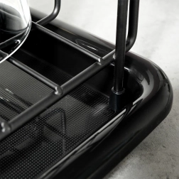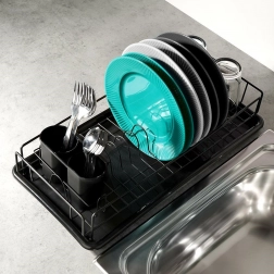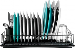 Include un coș pentru tacâmuri cu două compartimente, detașabil, pe care îl poți poziționa în interiorul uscătorului sau în exterior, după preferință. Aspectul minimalist și nuanța neagră atemporală se potrivesc interioarelor clasice, moderne și industriale.