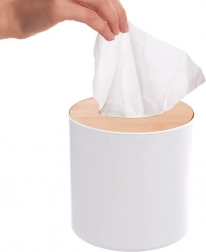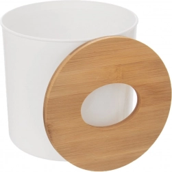 Acest coș de gunoi mic, dar practic, este excelent pentru deșeurile mărunte zilnice. Combină un corp din plastic alb cu un capac din bambus cu deschidere centrală pentru aruncare rapidă și igienică. Datorită dimensiunilor sale compacte, încape pe raft, pervaz sau blatul de lucru.
