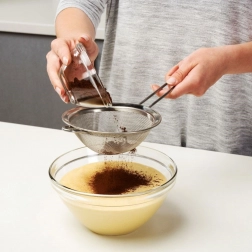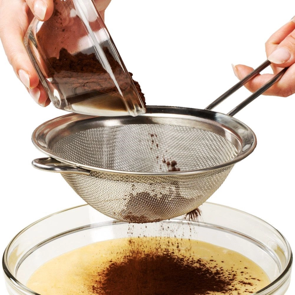 Plasa deasă îndepărtează eficient cocoloașele din făină, cacao sau zahăr și garantează aluaturi netede și supe limpezi, fără impurități.