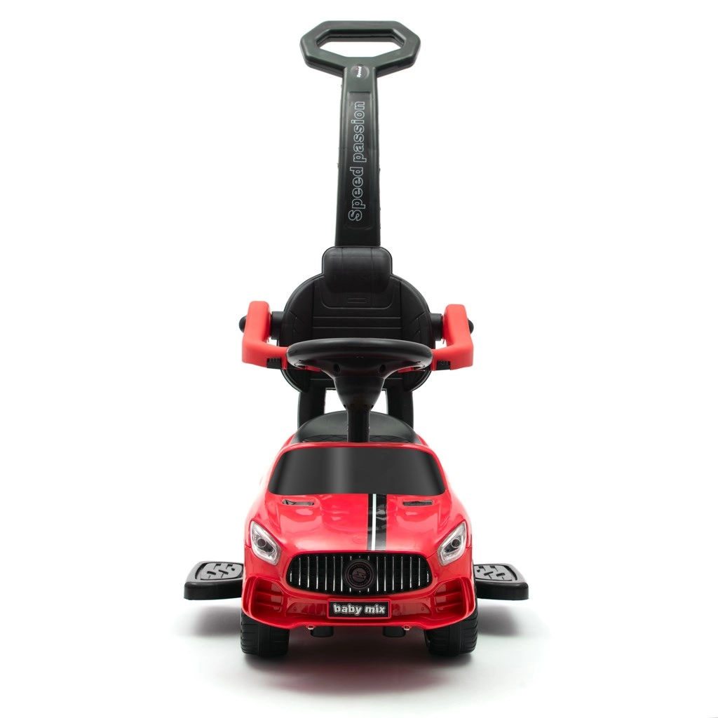 Împingătorul BABY MIX Racer este conceput pentru copii de la 12 luni și combină un design excelent cu o construcție stabilă. Roțile din față pivotante ușurează manevrarea, iar părinții vor aprecia tija de ghidare detașabilă pentru împingere confortabilă și controlul direcției. Datorită spațiului de sub scaun, micii șoferi își pot lua mereu comorile cu ei.