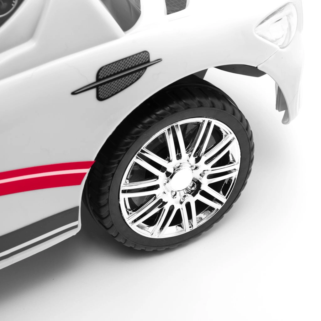 Trotineta fără pedale BABY MIX Racer se remarcă prin construcția durabilă și detaliile realiste care amintesc de un automobil sport veritabil. Copiii se bucură de o plimbare distractivă și își dezvoltă simultan motricitatea grosieră, coordonarea și echilibrul. Construcția stabilă pe patru roți și blocajul posterior împotriva răsturnării sporesc siguranța în utilizarea zilnică.