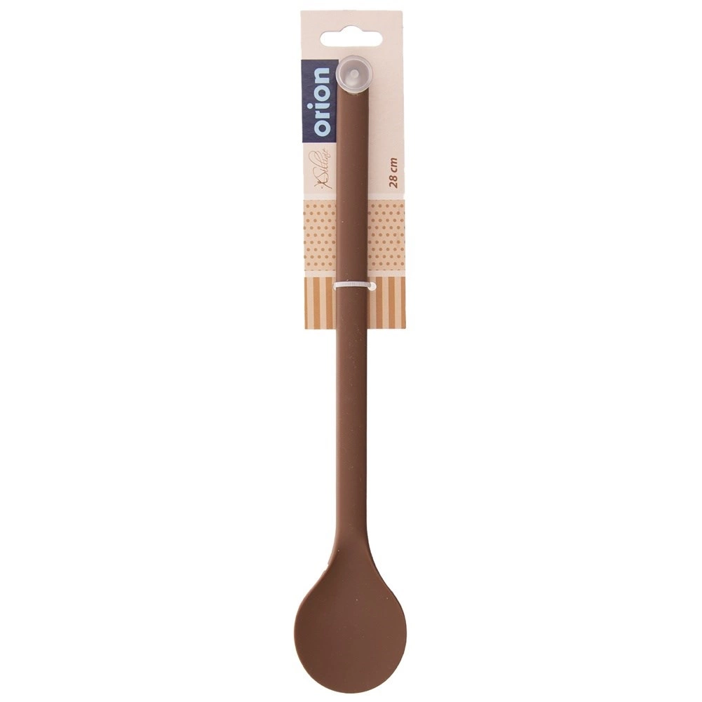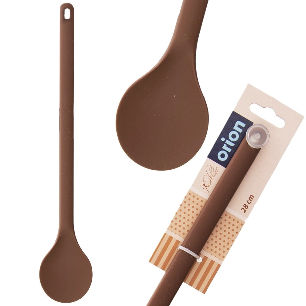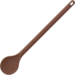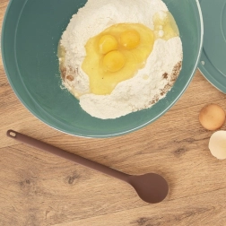 Designul monobloc se întreține ușor – siliconul nu absoarbe mirosuri sau lichide, iar produsul poate fi spălat în mașina de spălat vase. Mânerul practic antiderapant oferă prindere bună chiar și la amestecări îndelungate, iar orificiul de la capătul mânerului facilitează agățarea pe șină.