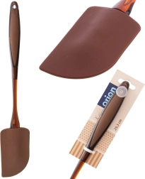 Această spatulă universală este un ajutor de neînlocuit la copt și gătit. Fabricată din silicon flexibil, care nu absoarbe mirosurile și lichidele, și completată cu un mâner ergonomic, antiderapant pentru o prindere confortabilă și sigură. Într-o nuanță elegantă de maro, se potrivește perfect atât în bucătăriile tradiționale, cât și în cele moderne.