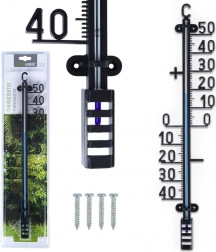 Termometrul este realizat din plastic durabil de calitate, într-o nuanță elegantă de negru, care rezistă la ploaie, soare și îngheț. Montajul este simplu – orificiile de fixare permit prinderea rapidă pe fațadă, gard din lemn sau șopron de grădină.