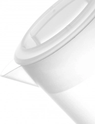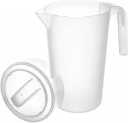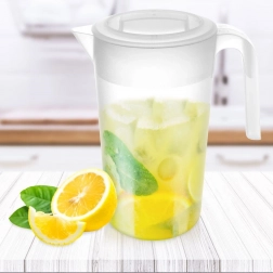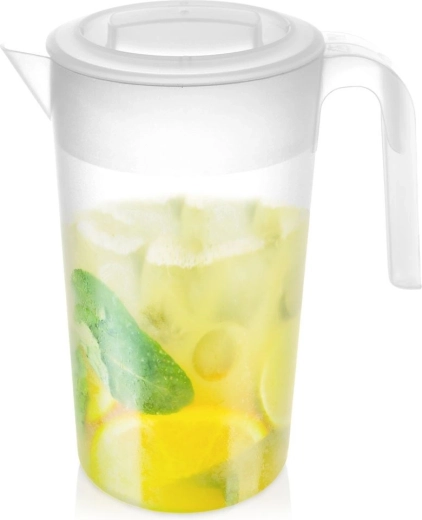 Cană universală din plastic rezistent, în variantă transparentă, excelentă pentru apă, sucuri, limonadă de casă, ceai cu gheață și compot. Datorită mânerului ergonomic și ciocului profilat cu precizie, turnarea este lină și fără picurare, în timp ce capacul protejează băutura de impurități și insecte – acasă sau în grădină.