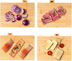 Fiecare tocător are o etichetă cu o iconiță gravată pentru un tip concret de aliment – legume, carne de pasăre, carne și pește. Astfel eviți cu ușurință contaminarea încrucișată și menții curățenia la gătit.