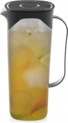 Carafa practică din plastic de calitate, ușor și rezistent, în variantă neagră, este excelentă pentru acasă, în grădină sau la petreceri. Corpul transparent permite controlul nivelului și o prezentare atrăgătoare a băuturilor cu fructe sau ierburi. Datorită dimensiunilor compacte, încape comod în frigider.