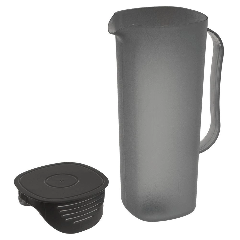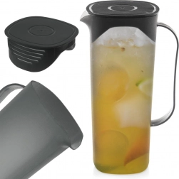 Carafă elegantă din plastic cu capac, cu un volum de 1,8 l, ideală pentru servirea apei, limonadei sau ceaiului cu gheață. Are un , un pentru turnare precisă și un capac cu sită care reține gheața și fructele și, în același timp, protejează băutura de insecte. Ușoară, rezistentă și potrivită pentru mașina de spălat vase.