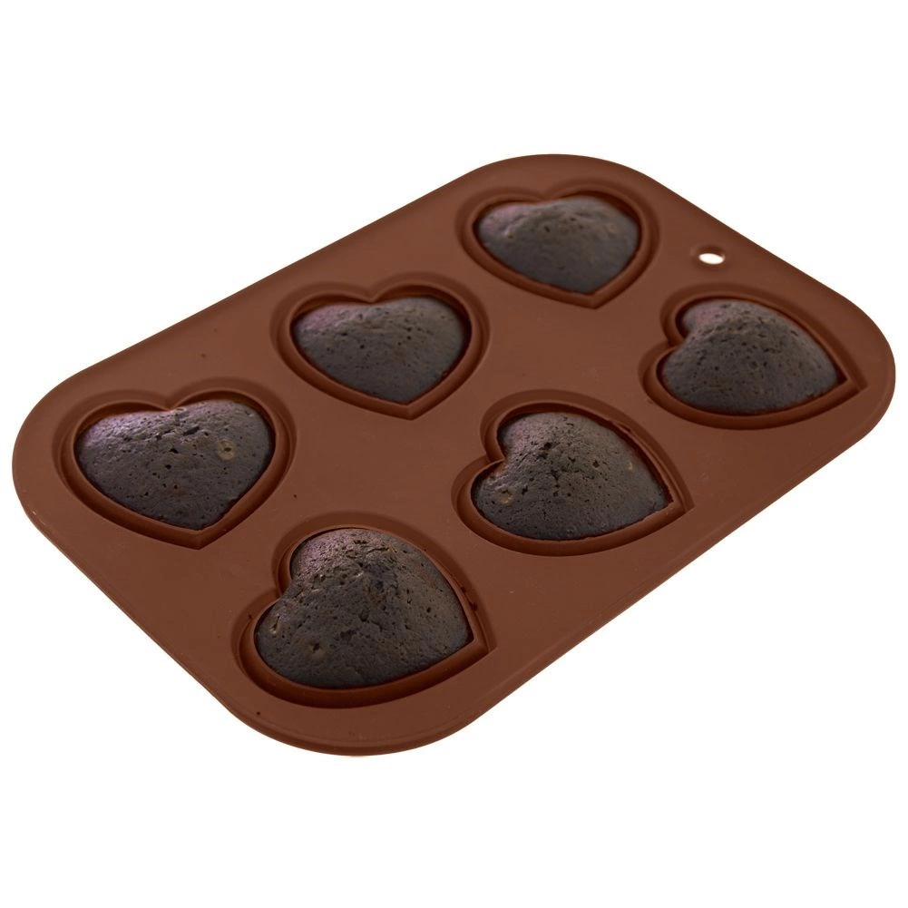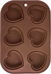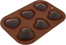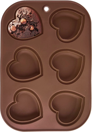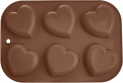 Această formă dreptunghiulară din silicon, de culoare maro, este ideală pentru prepararea brioșelor în formă de inimă, a deserturilor și a ciocolatei. Datorită suprafeței antiaderente nu este necesară ungerea, aluatul nu se lipește, iar bunătățile gata preparate se scot ușor.
