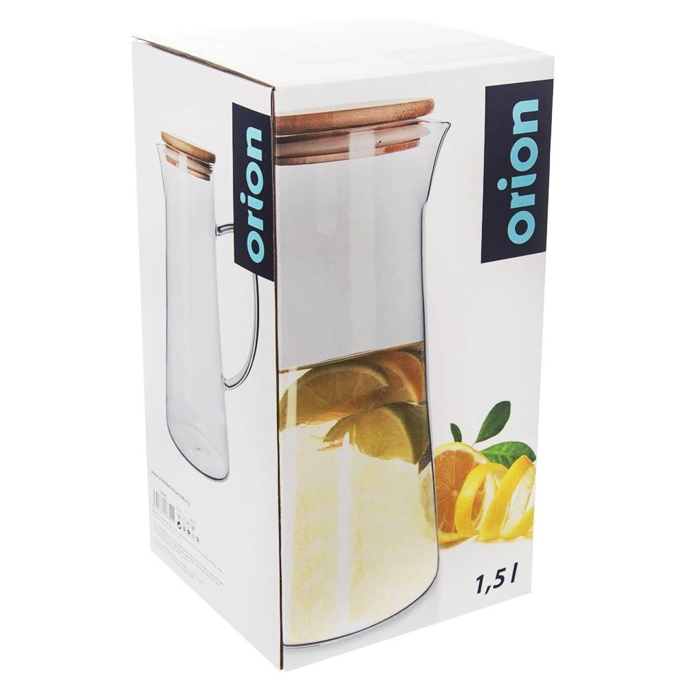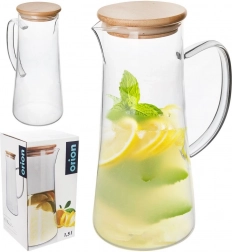 Carafa stilată cu volum de 1,35 l este fabricată din sticlă borosilicată rezistentă, care suportă temperaturi de la 20 °C până la 230 °C. Echipată cu un capac natural din bambus cu garnitură din silicon, păstrează băuturile mai mult timp proaspete și protejate de impurități sau insecte. Mânerul ergonomic și gura de turnare profilată asigură turnare sigură și precisă, fără picături.
