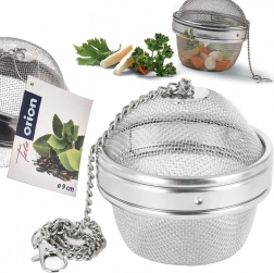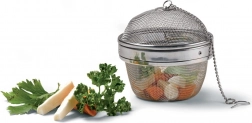 Sită practică din oțel pentru condimente, cu diametrul de 9 cm și înălțimea de 8 cm, pentru asezonarea ușoară a supelor, fondurilor și ceaiurilor. Datorită plasei fine și dese, eliberează în preparat aroma și gustul ierburilor, dar reține resturile acestora. Fabricată din oțel inoxidabil de calitate, cu închidere tip click și lanț cu cârlig pentru agățare comodă pe marginea oalei sau a ulciorului.
