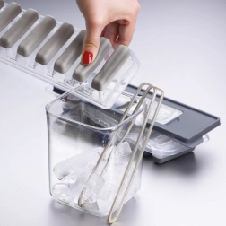 Folosește forma nu doar pentru apă – congelează în ea și sucuri de fructe, infuzii de ierburi sau sorbeturi și creează bețișoare de gheață răcoritoare pentru vară. Materialele de calitate, sigure pentru contactul cu alimentele, sunt blânde cu sănătatea și gustul băuturilor, iar capacul ajută la menținerea curățeniei în congelator.