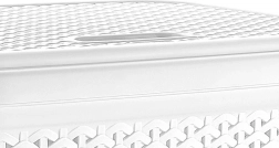 Mențineți ordinea în baie cu un coș de rufe încăpător, în design modern de ratan. Capacul închis ascunde conținutul, iar modelul perforat asigură circulația aerului, astfel încât umiditatea și mirosurile să nu se acumuleze la interior. Culoarea albă și forma clasică se potrivesc oricărui interior.