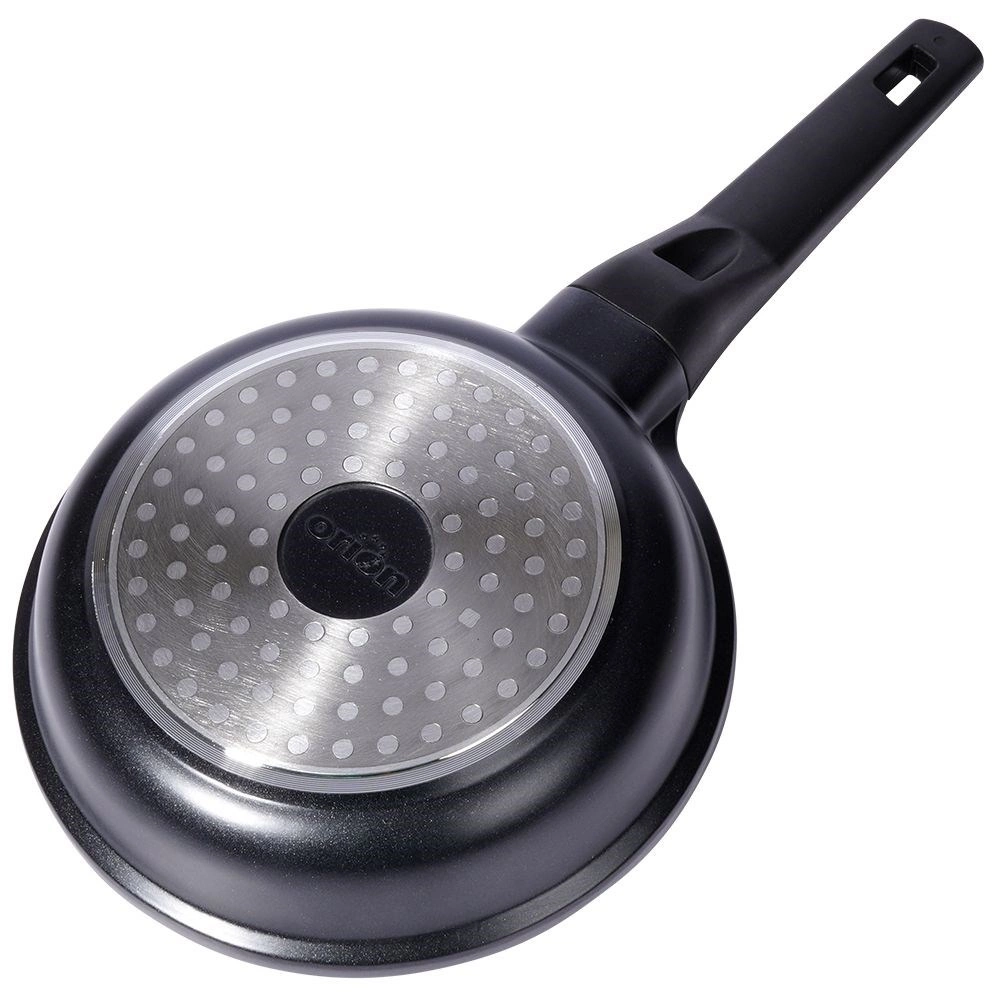 Fundul multistrat distribuie excelent căldura pe întreaga suprafață a tigăii. Potrivită pentru gaz, electric, vitroceramică și inducție.