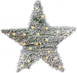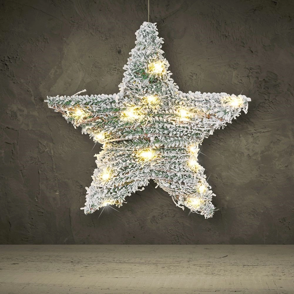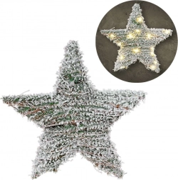 Această stea elegantă combină aspectul unei decorațiuni de conifere acoperite de zăpadă cu lumina caldă a LED-urilor, creând o atmosferă festivă plăcută. Datorită alimentării pe baterii, o puteți amplasa cu ușurință oriunde în interior – pe perete, pe ușă, la fereastră sau sprijinită de o comodă ori un raft.