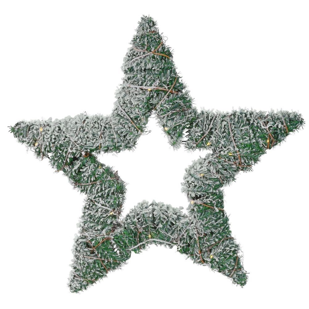 40 de LED-uri cu lumină alb cald luminează uniform conturul stelei, iar funcția de temporizator oprește automat lumina după 6 ore și o pornește din nou după 18 ore. Decorațiunea este destinată utilizării în interior și este ideală ca coroniță de Crăciun pentru ușă sau ca element luminos de sine stătător.