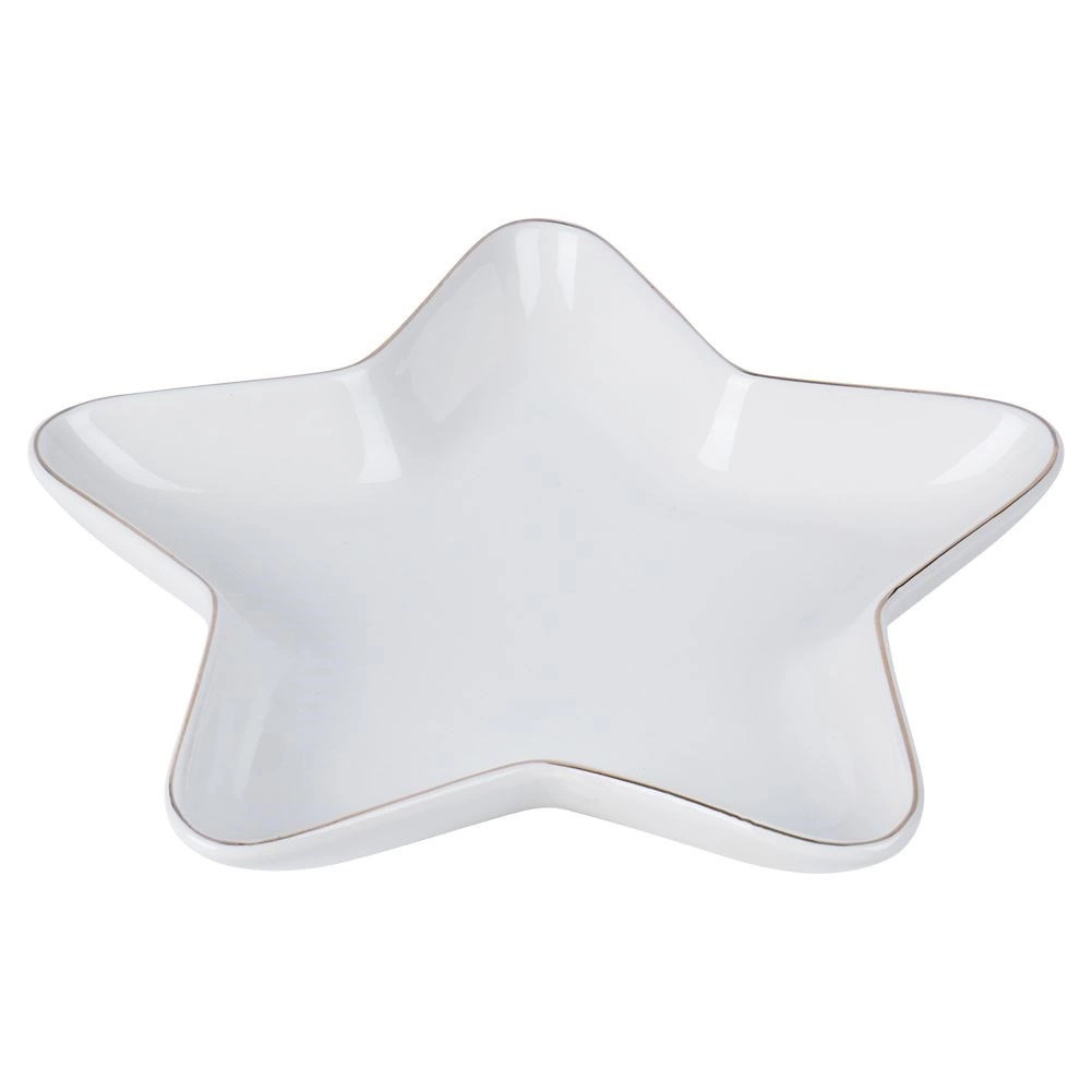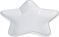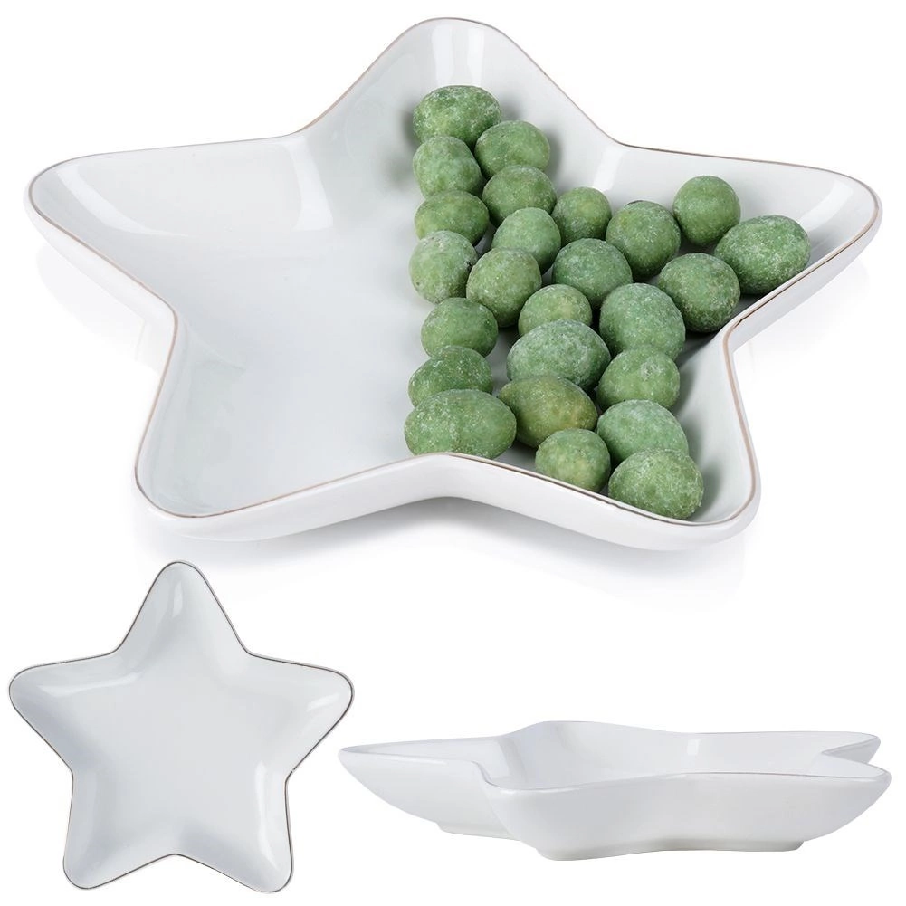Creează o atmosferă festivă pe masă cu această farfurie decorativă în formă de stea. Porțelanul de calitate, de culoare albă, și designul discret pun în valoare servirea prăjiturilor, nucilor, aperitivelor și a deserturilor mici. Farfuria este solidă, rezistentă și, datorită dimensiunilor practice, se potrivește în orice gospodărie.