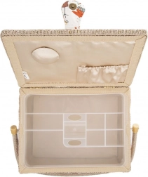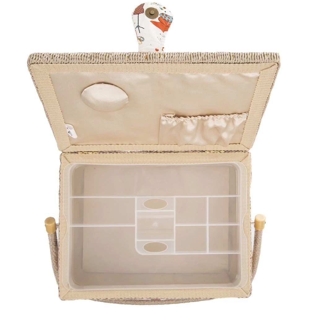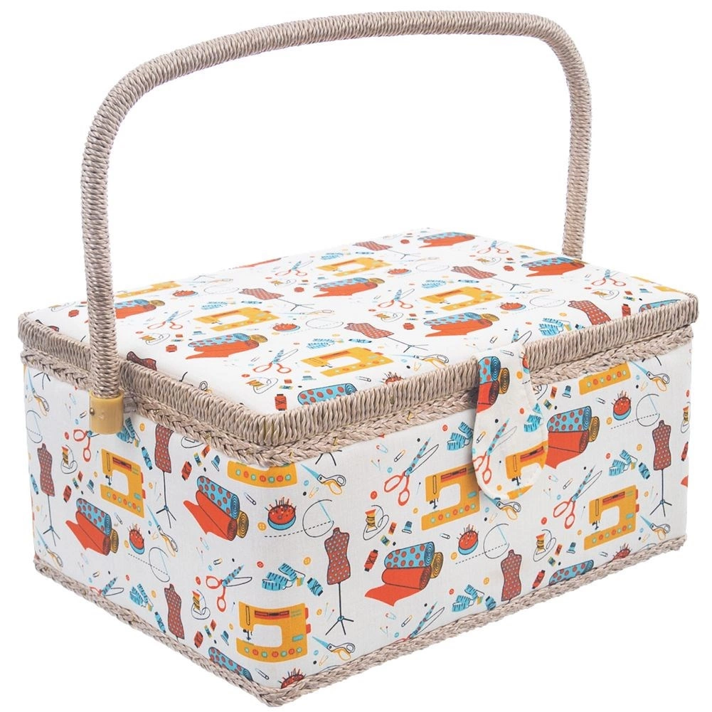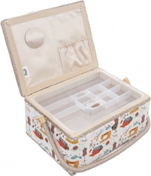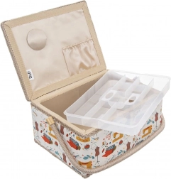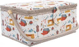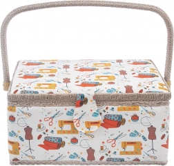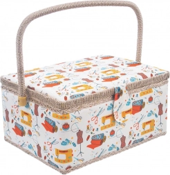 O cutie de cusut stilată și bine realizată, sub forma unui coș, păstrează mereu la locul lor ustensilele de cusut. Exteriorul textil cu motive colorate de croitorie se potrivește ușor cu colțul dvs. de cusut. Datorită dimensiunilor compacte, este ideală pentru cusut acasă și pentru transport la cursuri și workshopuri.