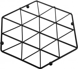 Suportul metalic universal pentru vase fierbinți este un ajutor excelent în orice bucătărie. Are un design hexagonal de efect, potrivit atât pentru interioare moderne, cât și clasice. Patru picioare sub formă de bilă asigură stabilitate fermă și un spațiu suficient între vas și suprafața mesei, protejând în mod fiabil blatul de lucru de căldură și deteriorare.