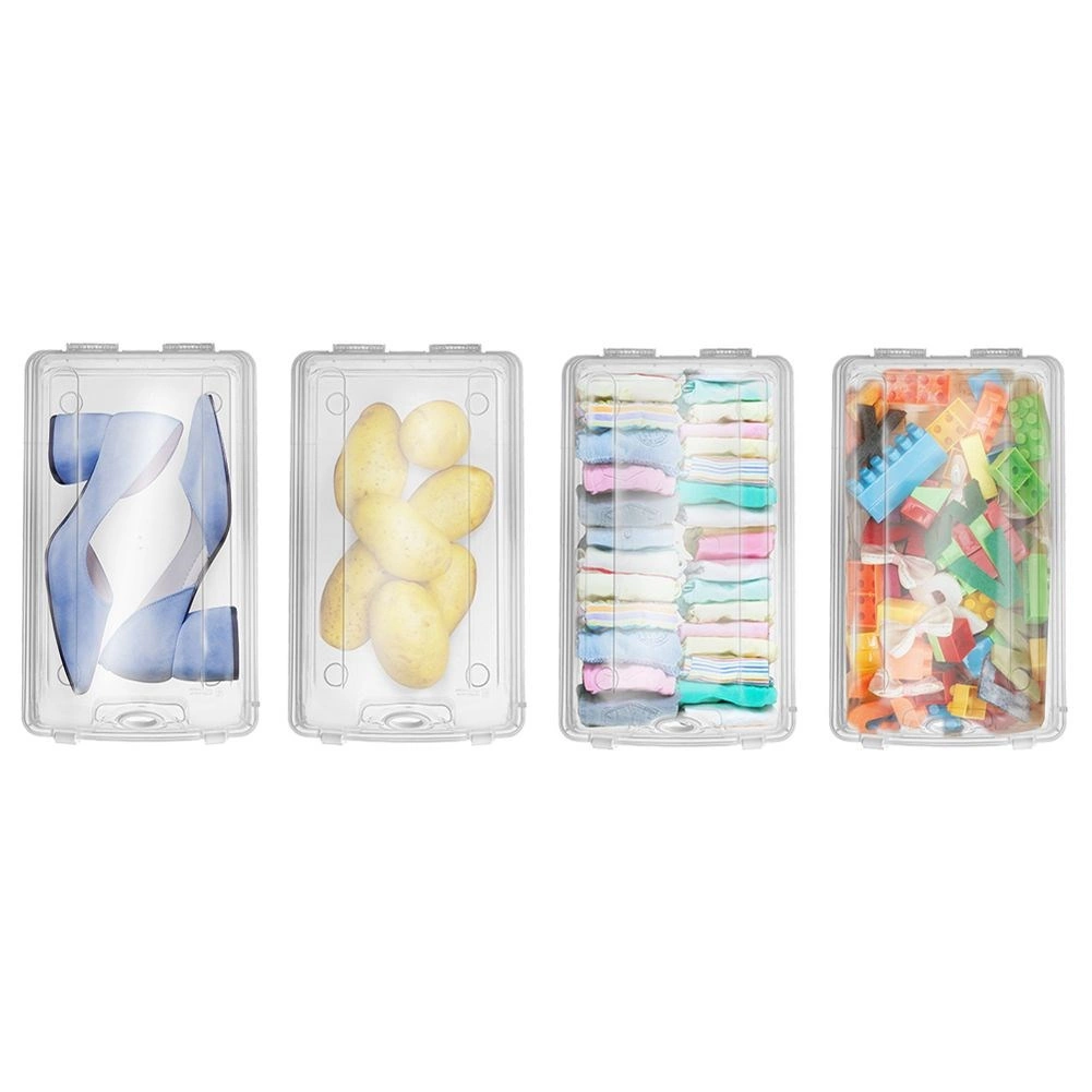 Cutia închisă pentru pantofi este o alegere excelentă pentru depozitarea ordonată și igienică a încălțămintei, hainelor, jucăriilor sau documentelor. Pereții transparenți îți permit să vezi imediat ce este înăuntru, fără a deschide. Clipsurile laterale robuste mențin capacul sigur la locul lui, iar orificiul de ventilație limitează umiditatea și mirosurile.