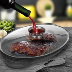 Dozatorul integrat din inox, amplasat în centrul capacului, permite turnarea lichidelor în timpul gătirii fără pierdere de căldură și abur – pentru rezultate suculente și aromate.