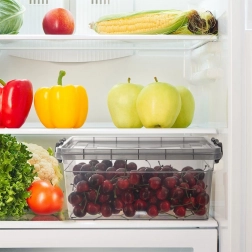 Cutia este ideală pentru depozitarea și organizarea alimentelor și a obiectelor casnice. O veți folosi în bucătărie, cămară, frigider, congelator și birou. Rezistența într-un interval larg de temperatură facilitează încălzirea în cuptorul cu microunde (fără capac) și spălarea în mașina de spălat vase.