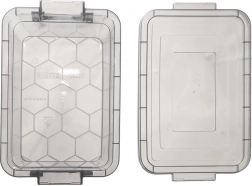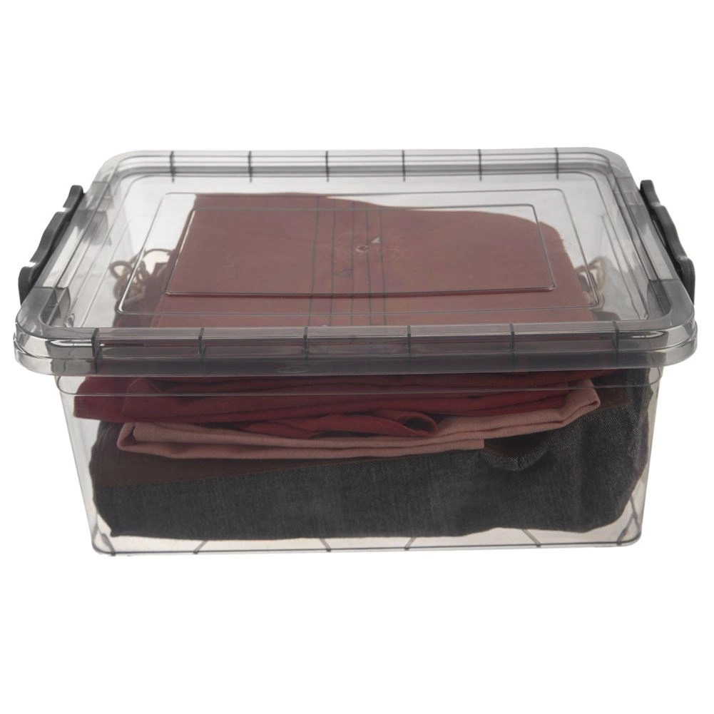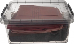 Cutie universală din plastic, cu un volum de 14 l, dotată cu capac sigur cu cleme, ideală pentru depozitarea alimentelor, a hainelor și a obiectelor mărunte. Datorită execuției transparente, gri închis, poți vedea ușor conținutul fără a deschide. Materialul este fără BPA, rezistă la temperaturi de la -25 °C la +95 °C, este compatibilă cu mașina de spălat vase, cuptorul cu microunde (fără capac), frigiderul și congelatorul. Capacul cu două cleme protejează conținutul împotriva umidității și prafului și permite transportul în siguranță.