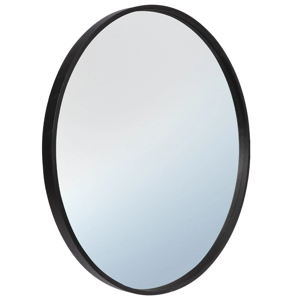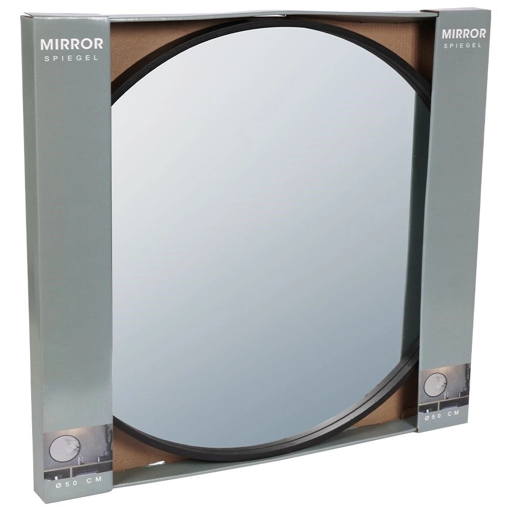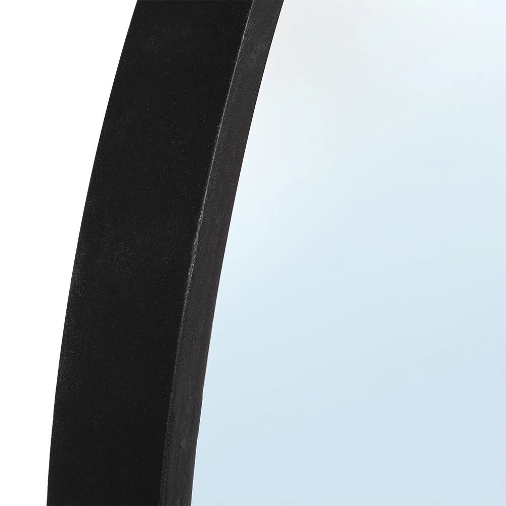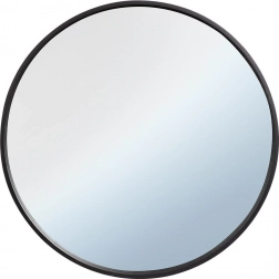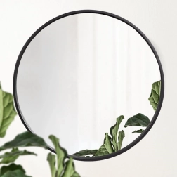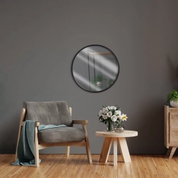 Forma rotundă și rama neagră subțire creează un accent modern care mărește optic și luminează încăperea.