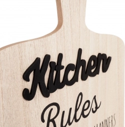 Metalul vopsit în câmp electrostatic rezistă utilizării zilnice, iar placa din MDF oferă stabilitate și un aspect decorativ de tocător.