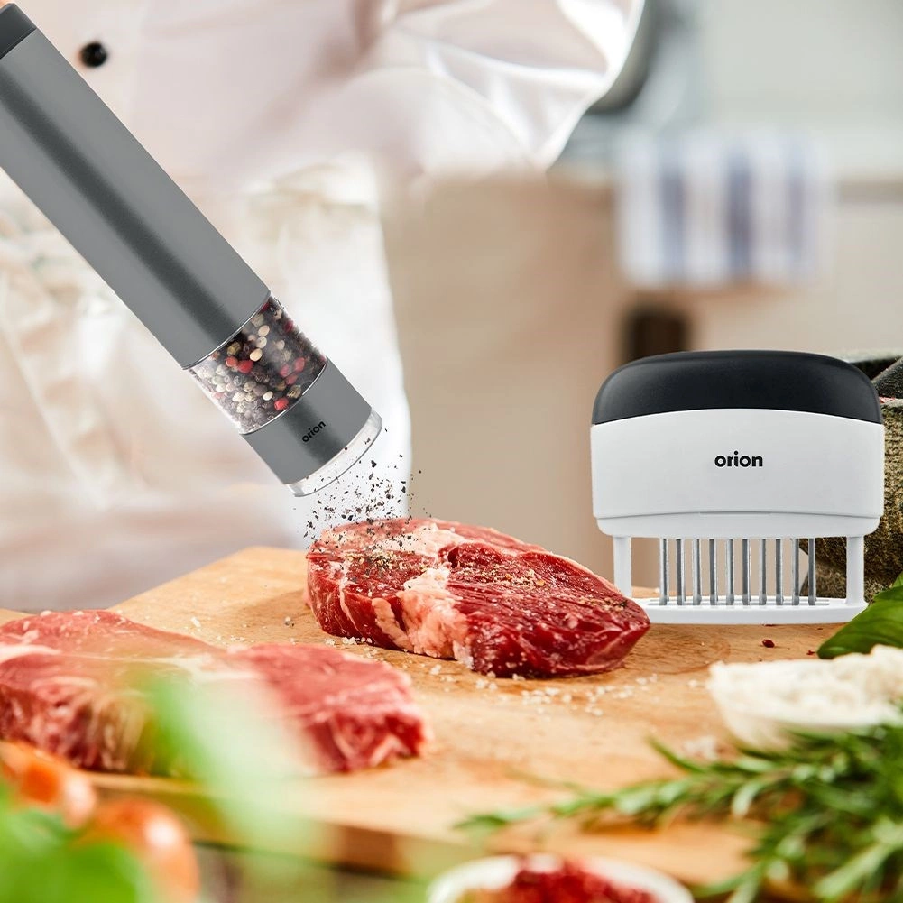 Câmpul dens de ace ascuțite din inox pătrunde adânc în carne, înmoaie fibrele și asigură o pregătire mai rapidă și mai uniformă.