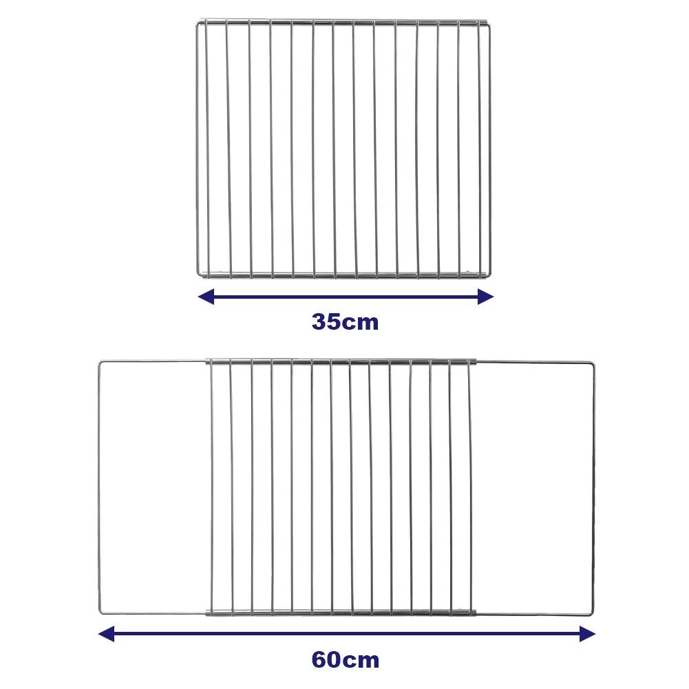 Construcția extensibilă 35–60 cm, cu fixare prin șurub, permite adaptarea precisă a grătarului la lățimea cuptorului dvs.
