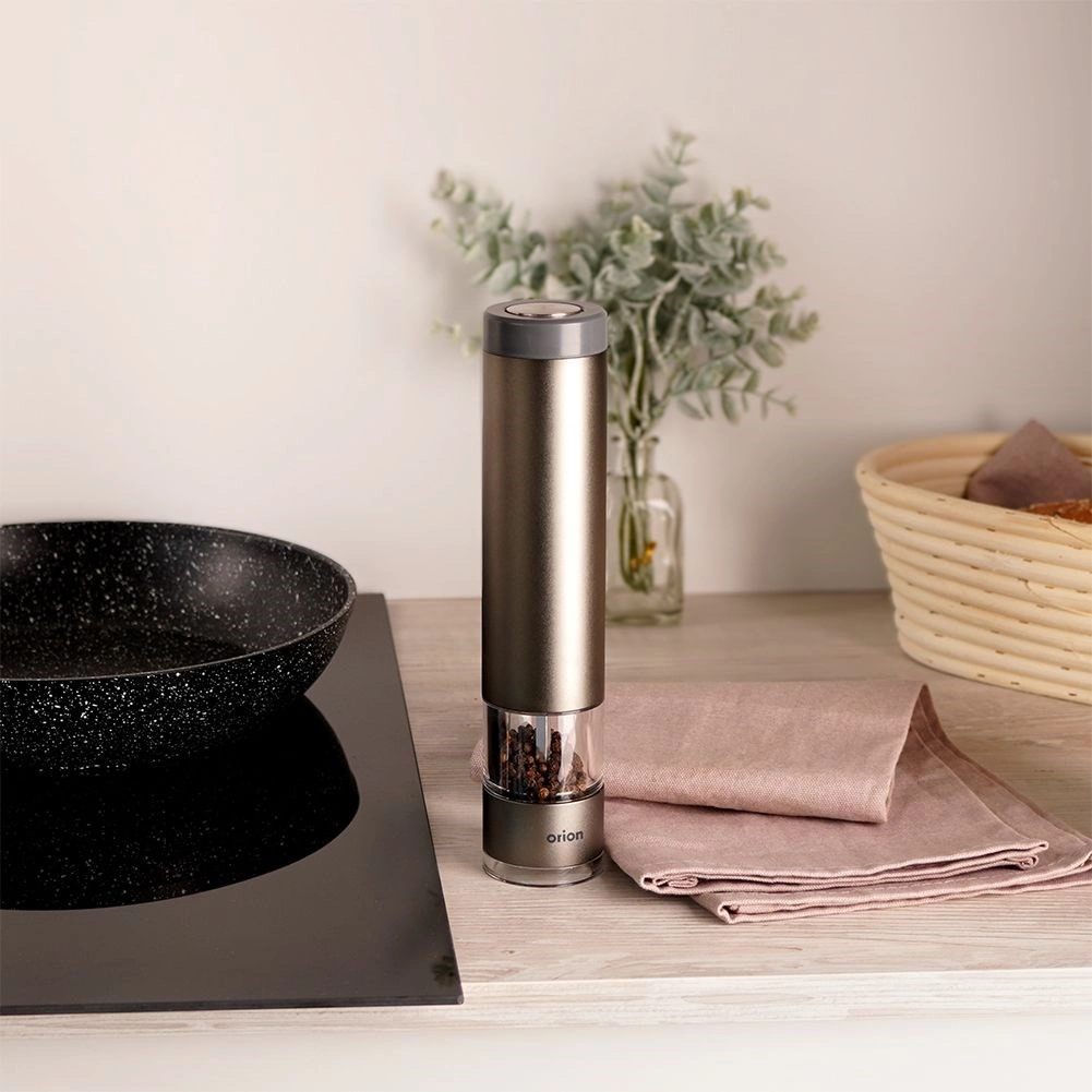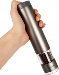 Râșnița înaltă de 22,5 cm și suplă, din aluminiu de calitate, se remarcă prin design modern și construcție rezistentă. Mecanismul ceramic face față și boabelor mai dure și garantează o măcinare uniformă pentru eliberarea completă a aromei condimentelor proaspete.