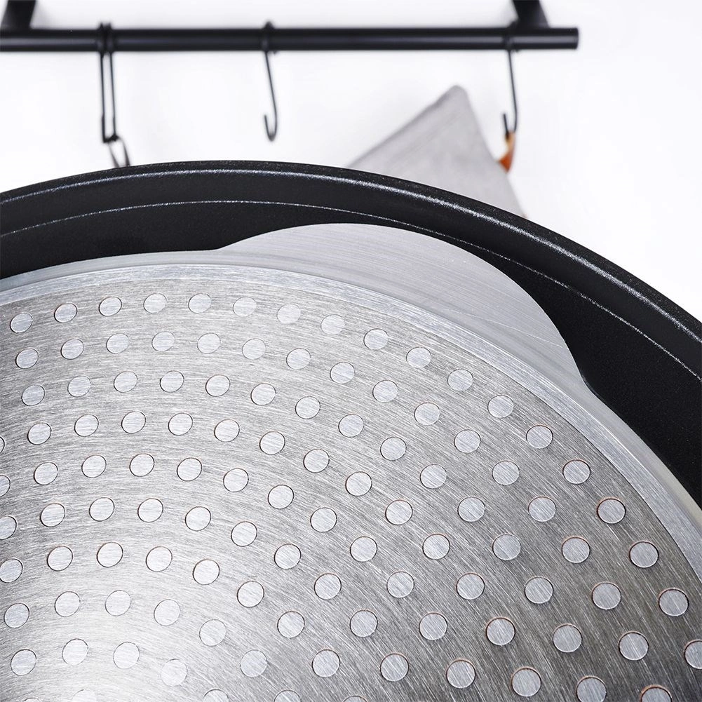 Corpul din aluminiu și baza pentru inducție asigură transfer eficient de căldură, economie de energie și utilizare pe toate tipurile de plite, inclusiv inducție.