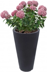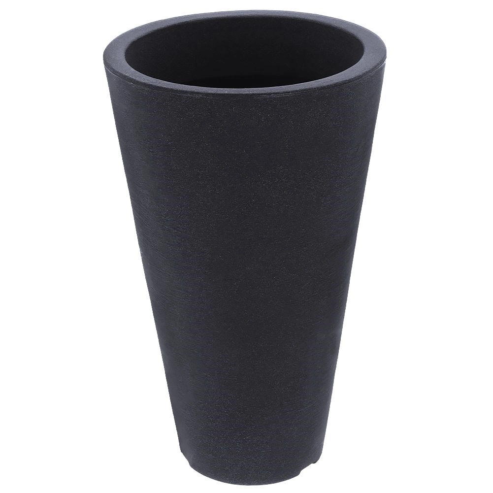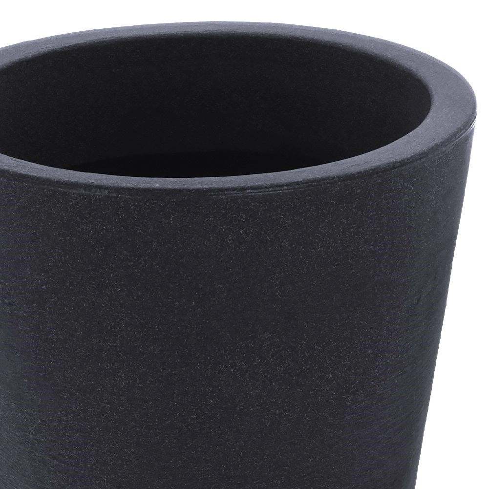 Acest ghiveci conic înalt, în nuanță elegantă de antracit, se remarcă prin aspectul minimalist și utilizarea universală. Materialul care imită piatra este ușor, solid și ușor de curățat – murdăria se îndepărtează simplu prin clătire cu apă.