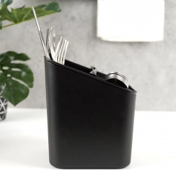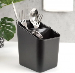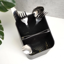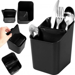 Elegant și funcțional, scurgătorul pentru tacâmuri în culoare neagră atemporală păstrează bucătăria organizată și curată. Datorită separatorului detașabil sortați ușor tacâmurile, iar după îndepărtarea lui obțineți un recipient spațios cu o singură cameră. Baza perforată permite scurgerea rapidă a apei, astfel încât tacâmurile nu stau în umezeală, iar blatul rămâne uscat.