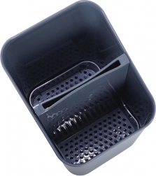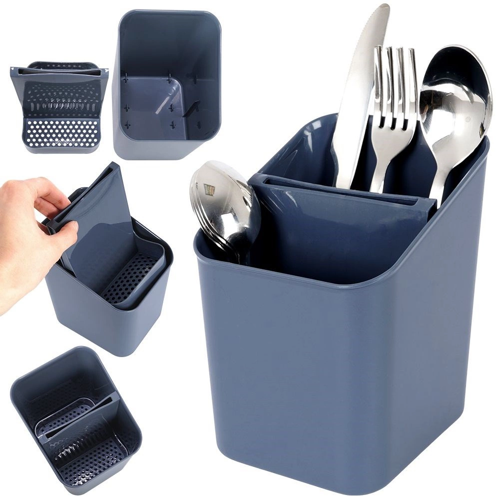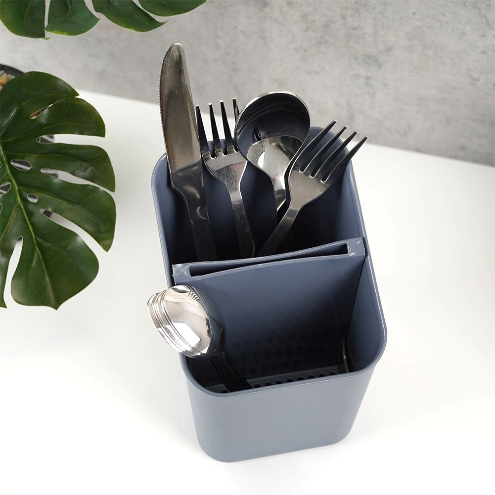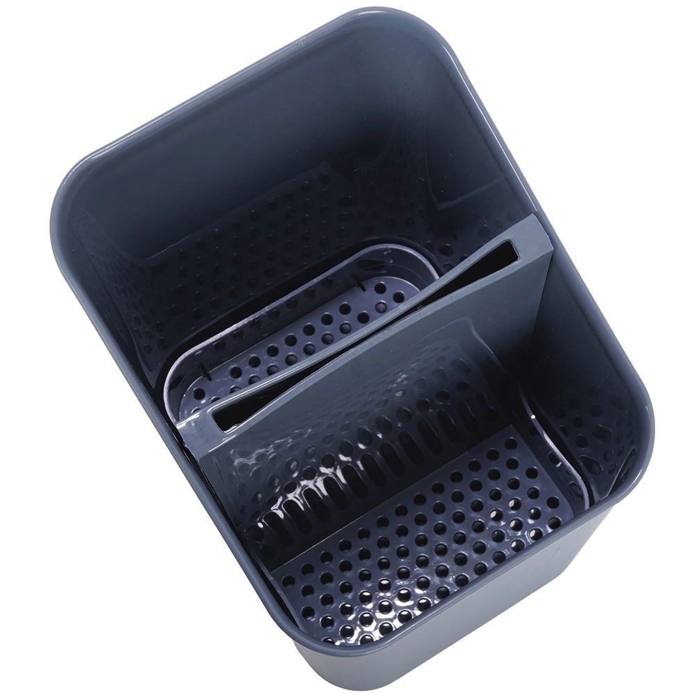 Păstrați chiuveta și blatul de bucătărie în ordine. Acest uscător gri pentru tacâmuri îmbină o construcție durabilă din plastic de calitate cu o organizare internă inteligentă. Separatorul detașabil creează două zone practice, iar datorită orificiilor de drenaj apa se scurge, astfel încât tacâmurile nu stau în apă și se usucă mai repede.