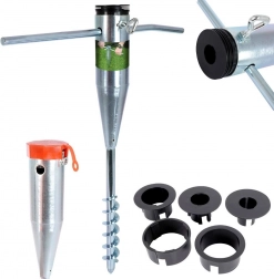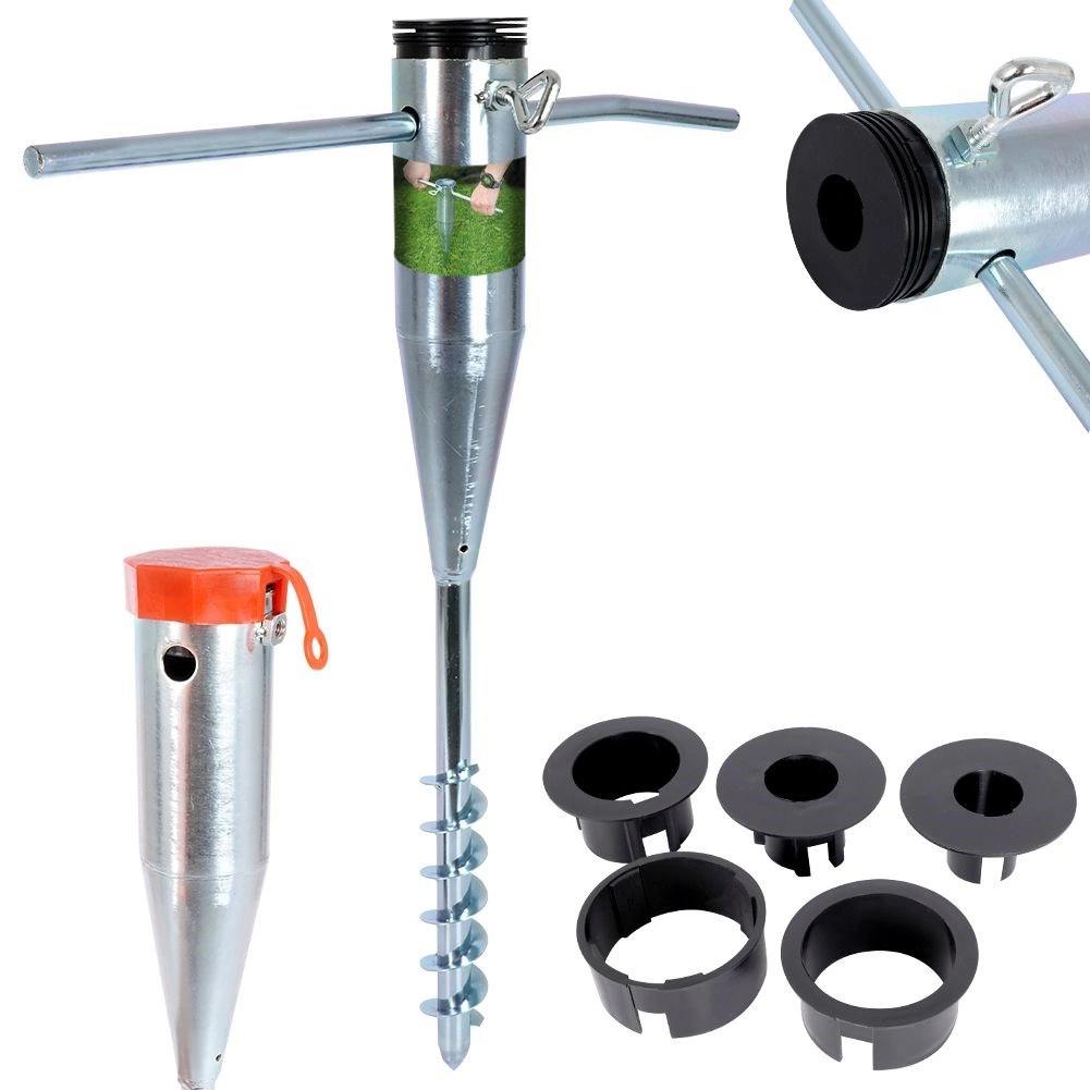 Suportul înșurubabil pentru umbrelă, cu lungimea de 57 cm, este o soluție fiabilă pentru instalare rapidă și fermă în gazon, sol de grădină sau nisip. Vârful tip burghiu și mânerele laterale permit înșurubarea facilă, în timp ce șurubul de prindere strânge în siguranță tija umbrelei. Metalul galvanizat asigură durată lungă de viață și rezistență la coroziune.