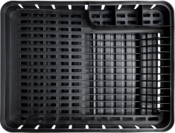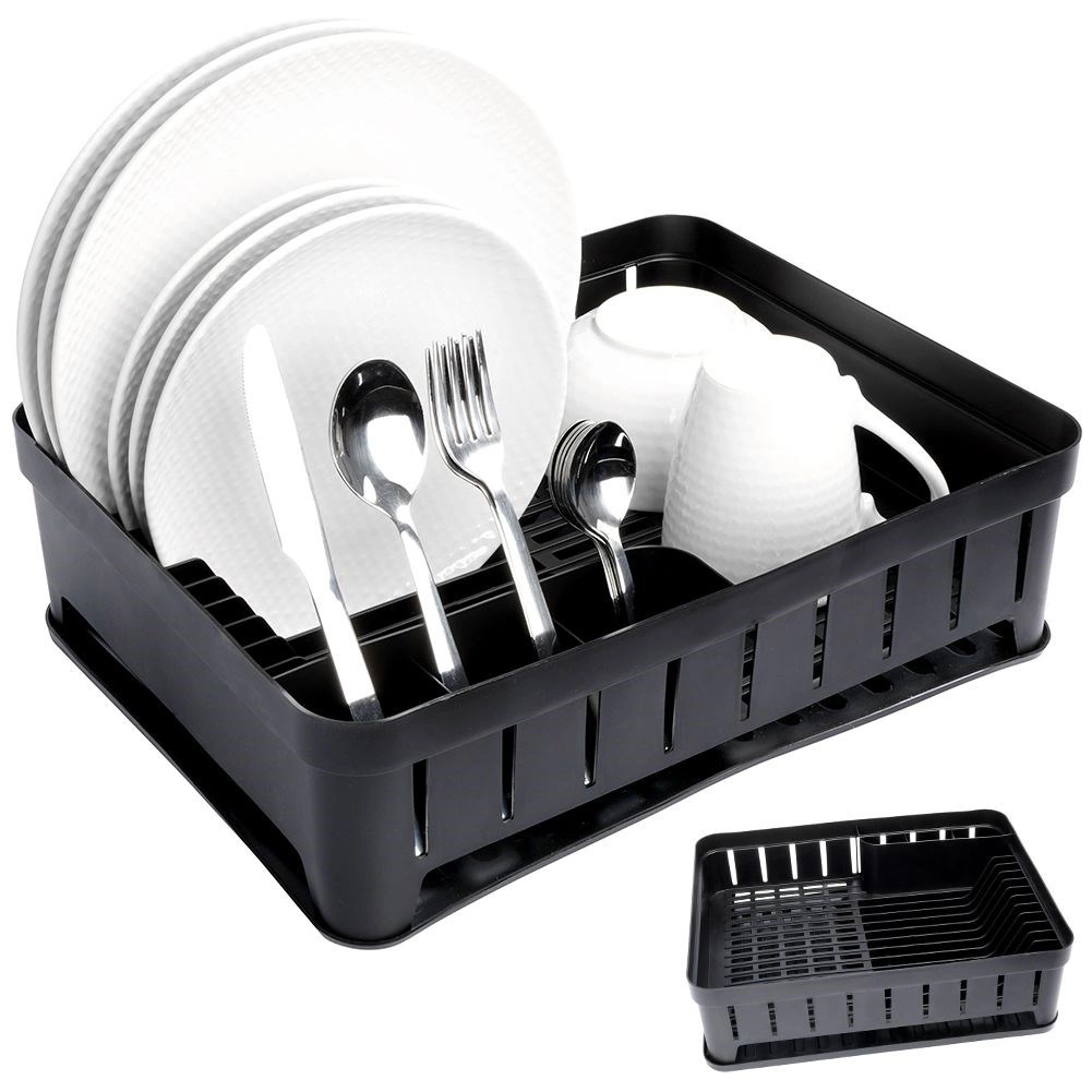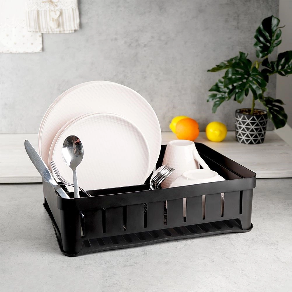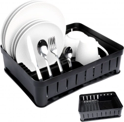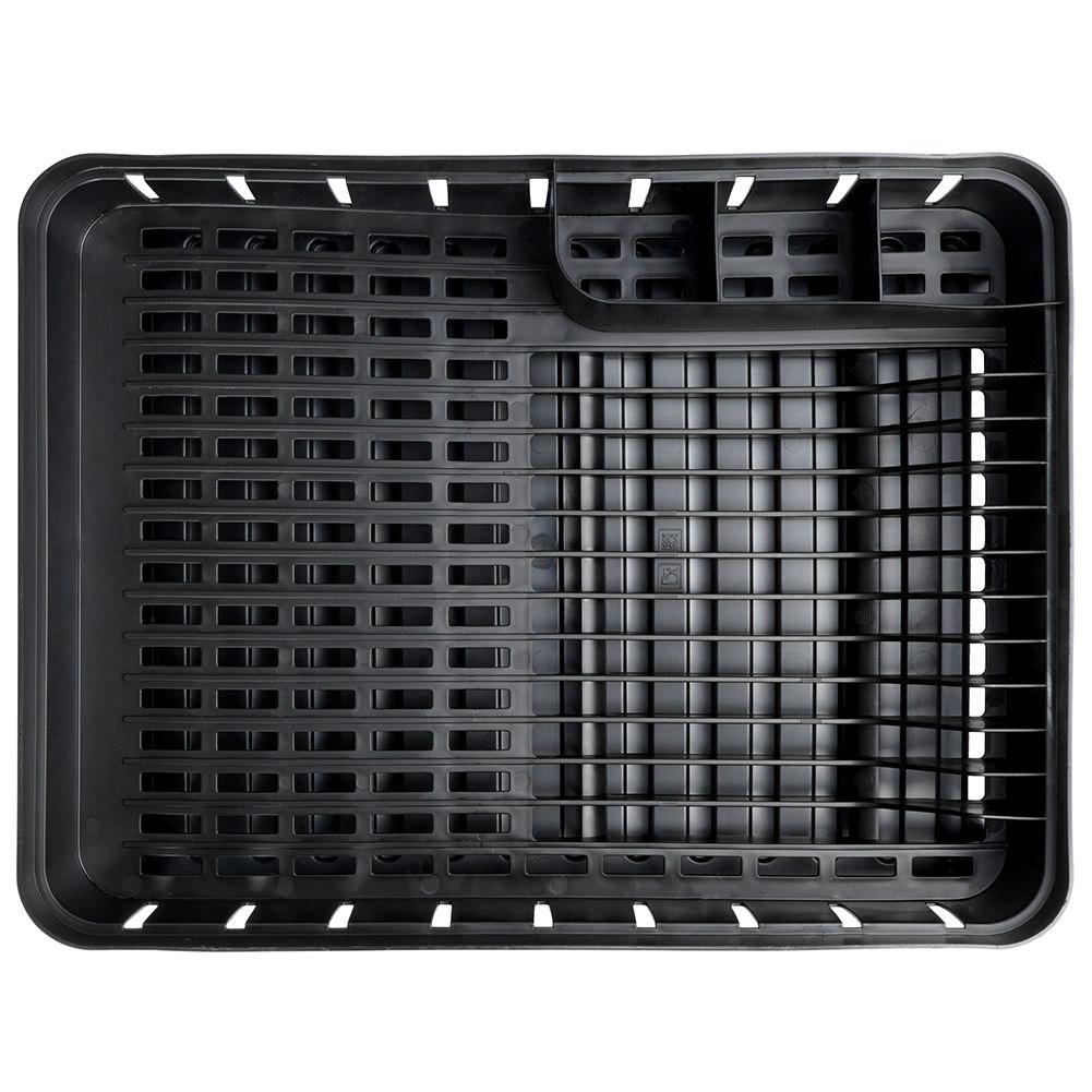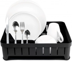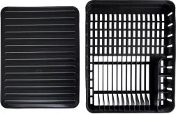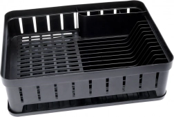 Suportul de scurgere pentru vase, elegant și compact, este un ajutor indispensabil în orice bucătărie. Designul minimalist și finisajul negru universal se potrivesc perfect interioarelor clasice, moderne și industriale. Construcția din plastic de calitate asigură rezistență și durată lungă de viață, iar tava din cauciuc detașabilă colectează apa scursă și menține blatul uscat.