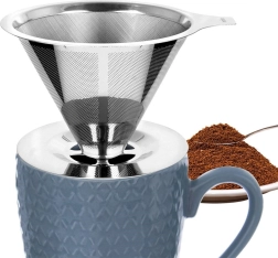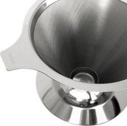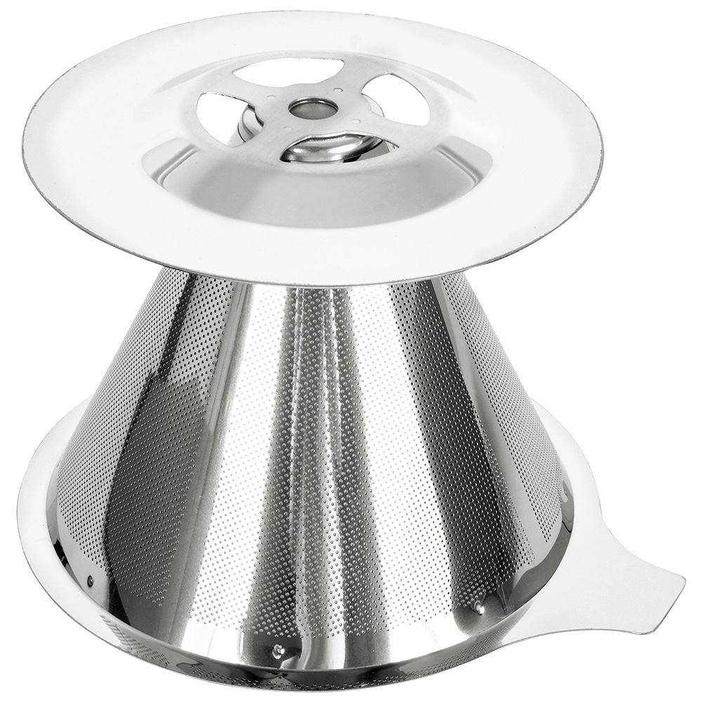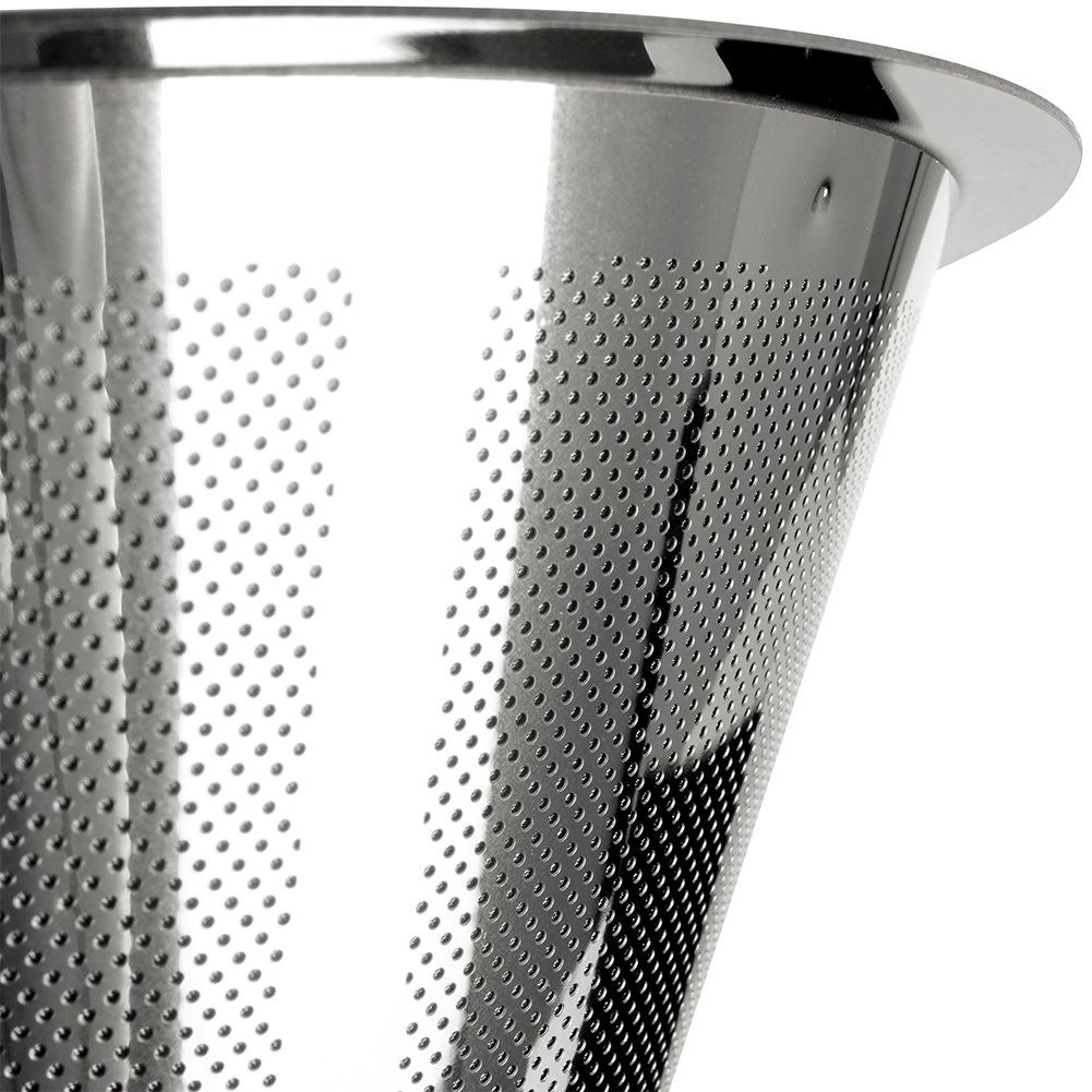 Filtru practic din inox pentru cafea prin picurare, pentru prepararea unei cafele aromate direct în cană. Este reutilizabil, fără inserturi de hârtie, din oțel inoxidabil de calitate și se spală ușor în mașina de spălat vase. Stă stabil pe cești cu diametrul de 6,5–9,5 cm și nu afectează aroma cafelei preparate.