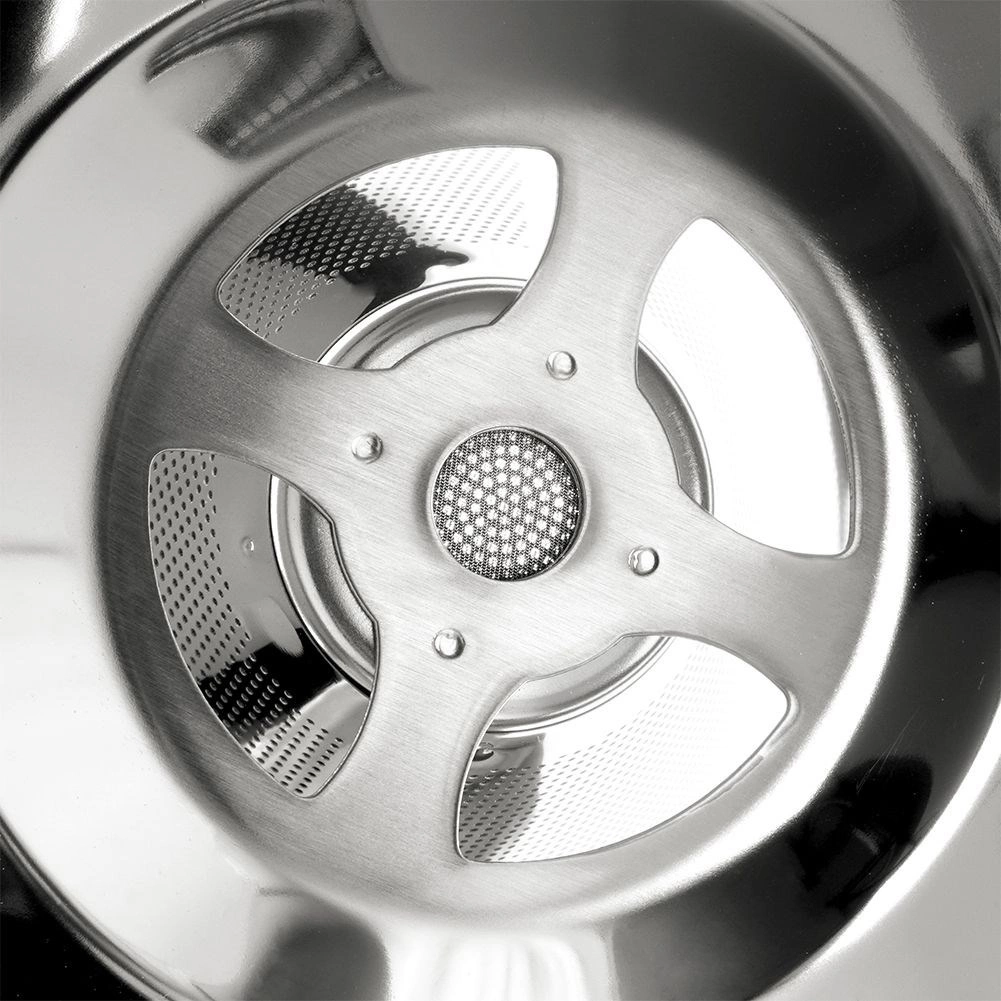 Plasa fină din inox lasă să treacă aroma bogată și uleiurile din cafea, dar reține zațul – fără gustul specific hârtiei.